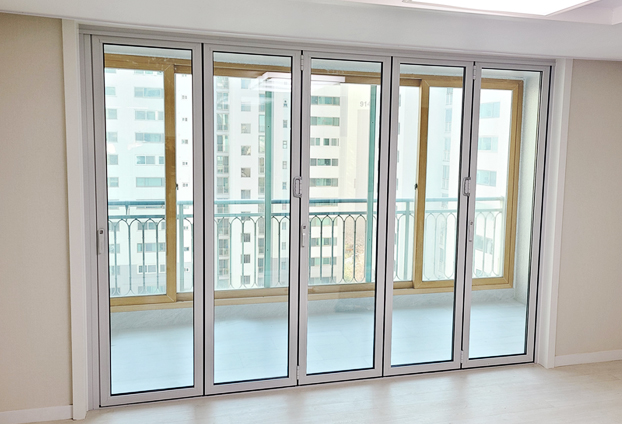 총 8장의 도어로 양개형 전개방식으로 시공이 진행하였으며 유리는 기본 유리인 16t 투명 + 투명 복층 유리로 제작 하였습니다.