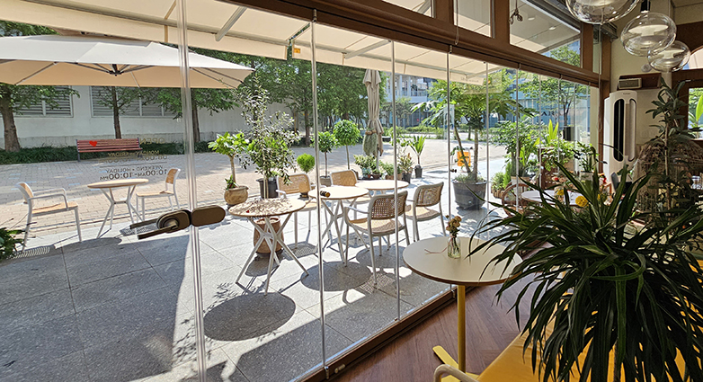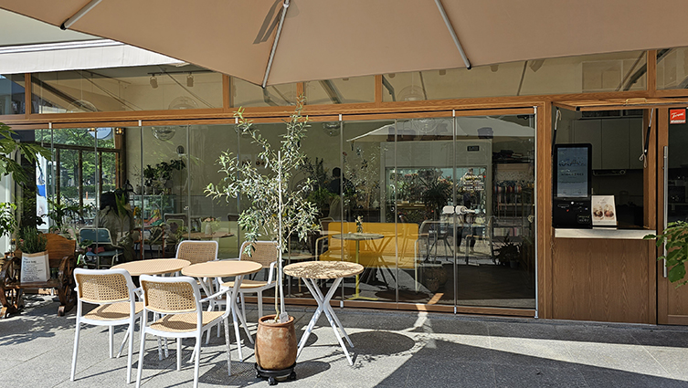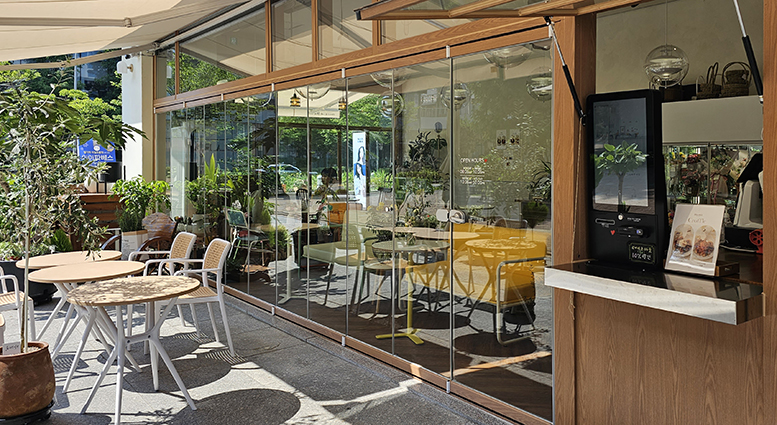 통창과는 달리 도어를 접어 모두 개폐할 수 있어 야외 오픈 카페로도 활용이 가능합니다.