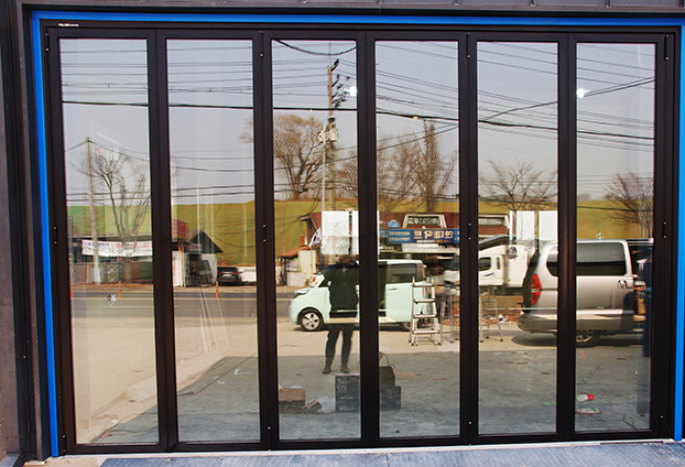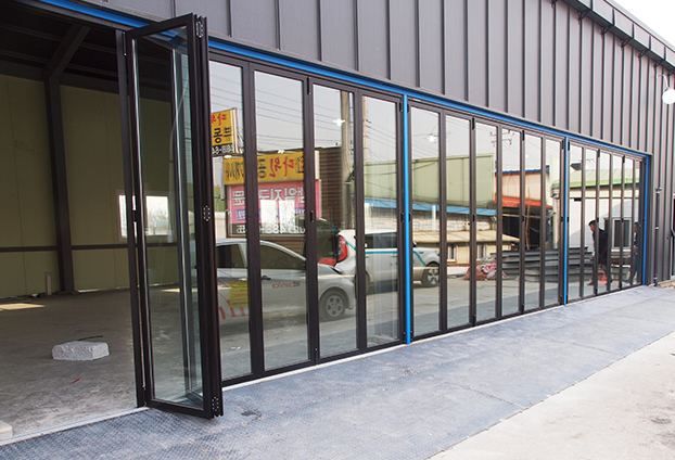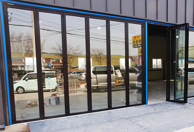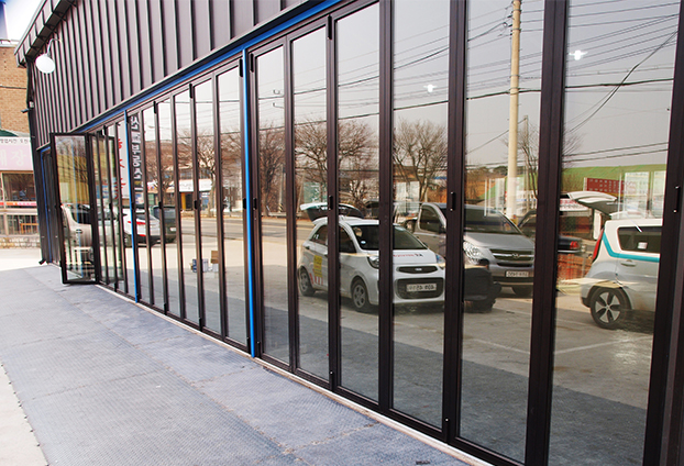 또한 무게가 많이 나가는 차량이 수시로 출입하는 공간으로 일반 폴딩도어와 다른 카센터용 폴딩도어를 설치해야합니다. 일반 폴딩도어도 단단하며 내구성이 좋은 제품이긴 하나, 아무래도 무거운 차량의 무게를 수없이 견뎌 내기에는 무리가 있을수 있기에 더욱 단단한 카센타용 폴딩도어를 시공합니다.
