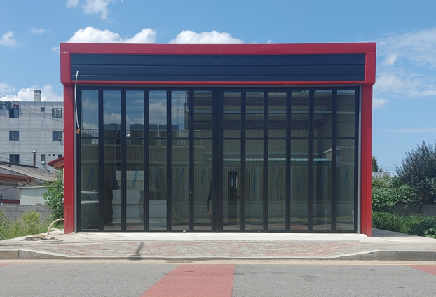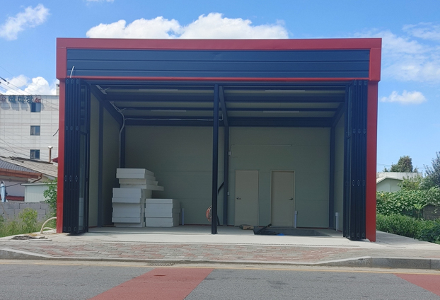 넓은 출입구가 필요한 장소에는 위,아래의 구동방식인 셔터문을 설치하여 사용하곤 하였습니다. 넓은 출입구는 보유가 되었지만, 오픈 후에는 계속 개방된 작업 공간에서 작업을 진행해야했기에 작업시에도 닫지 못하여 날씨와 기온의 변화에 따라 작업자에게 큰 불편함을 주곤 합니다. 또한 이렇게 높은 곳에는 설치하여 사용하기에도 어려움이 많습니다. 폴딩도어 설치 후 부터는 언제든 여닫음이 가능하기에 날씨가 추운날, 더운날도 불편함 없이 작업을 진행할수 있는 쾌적한 환경이 됩니다.