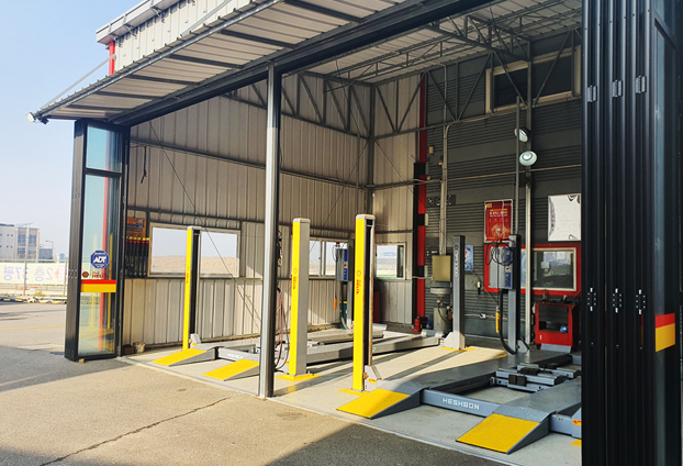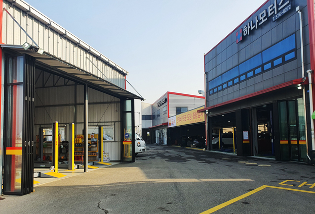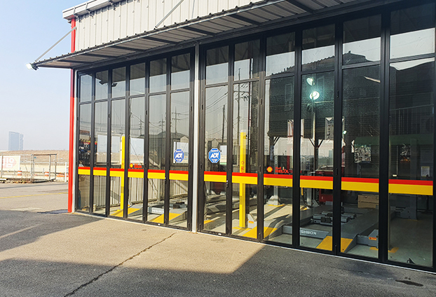 하지만 자유롭게 언제든지 좌우로 손쉽게 개폐가 가능하기에 카센터 작업장 내부에서 진행되는 작업장 소리를 폴딩도어로 차단하고 소음으로 인한 피래를 줄일 수 있으며, 또한 작업시 외부의 날씨, 먼지 등의 영향을 차단하여 세밀한 작업시 방해받는 요인을 차단 할 수 있습니다.