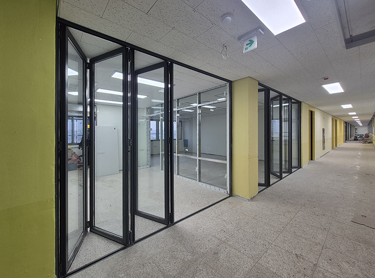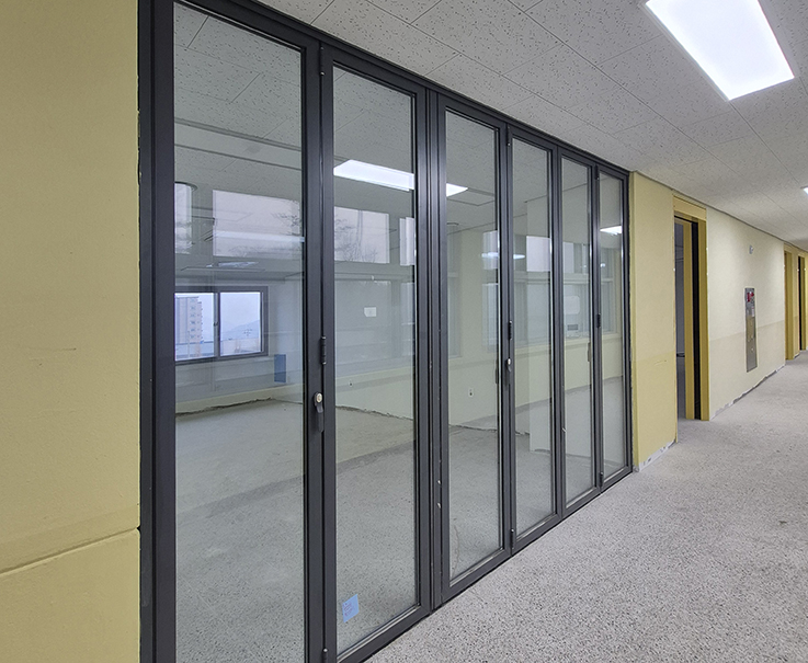 특히, 폴딩도어는 접혀서 격납되므로 사용하지 않을 때는 공간을 차지하지 않아 효율적인 활용이 가능합니다. 또한, 아이들의 안전을 고려해 날카로운 모서리가 없고 손이나 발이 끼지 않도록 설계된 제품을 사용하는 것이 중요합니다. 내구성이 뛰어난 제품을 선택하여 아이들이 자주 사용하는 학교 환경에 적합한 도어를 설치하는 것이 학교 리모델링에서 큰 장점이 됩니다.