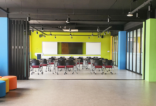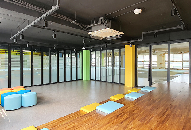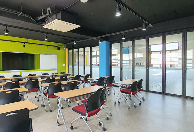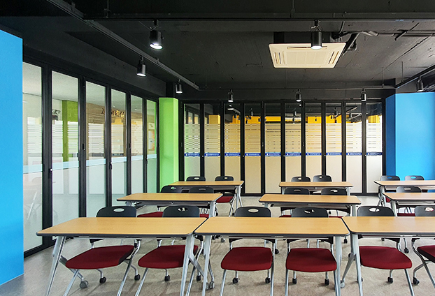 폴딩도어의 넓은 개방감과 효율적인 공간 활용으로 많은 학생들이 밝은 분위기 속에 즐거운 수업을 할 수 있습니다.