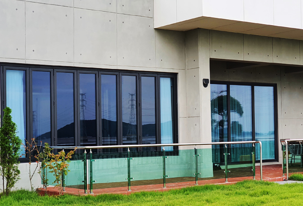 개별 수영장 옆으로 폴딩도어를 설치하여 자유롭게 미닫으며 실내의 수영장을 실외 수영장 같은 느낌으로 즐길 수 있으며. 폴딩도어 앞부분으로 테라스공간이 있어 개별 바베큐파티를 즐길수 있습니다.넓은 시야감과 공간 확장감을 주며, 넓은 개폐율로 실내 공기를 빠르게 순환시킬수 있어 쾌적한 실내 공기를 유지할수 있습니다.