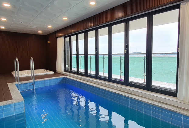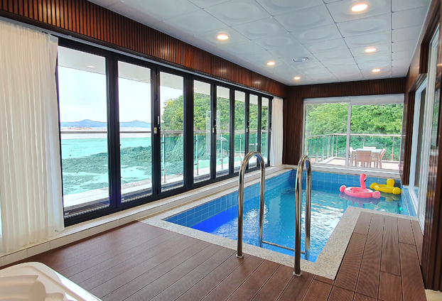 어린 아이를 동반한 가족 단위 여행객에게는 수영장에서 물놀이 하는 모습을 폴딩도어를 닫았을 때에도 유리창으로 확인도 가능하며, 폴딩도어를 모두 개방하여 넓은 개방감으로 물놀이 하는 모습을 확인 할 수 있기 때문에 안전하게 즐거운 시간을 즐길 수 있습니다.