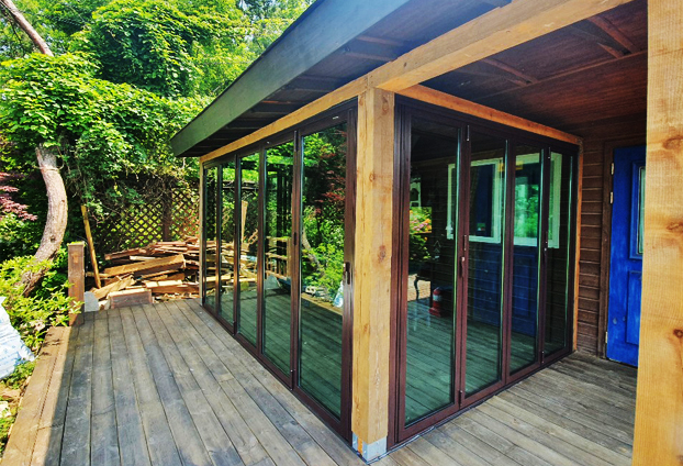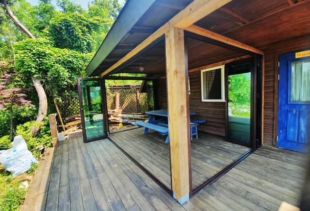 그런 단점에 폴딩도어를 설치하여, 필요시에 여닫음으로써 날씨와 상관없이 즐거운 바베큐 파티를 할수 있도록 하였습니다.