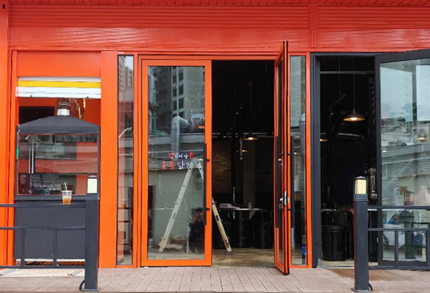 힌지도어는 사람이 출입할 수 있는 출입문 역할을 하는 도어로써 180° 회전하는 도어이며, 폴딩도어와 호환이 되어 폴딩도어와 출입문 개폐시 전체적인 개폐가 가능한 출입문이며 시건장치가 가능하여 안전성에도 뛰어난 출입문입니다. 폴딩도어와 호환이 가능하여 폴딩도어와 함께 시공하여 많은사용을 하고 있는 문이지만 힌지도어만 개별로 설치하여 사용하기도 합니다. 또한 1개를 설치하여 출입문으로 사용 하기도하지만 2장을 설치하여 양문형 출입문으로도 사용이 가능합니다.