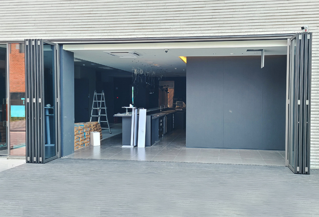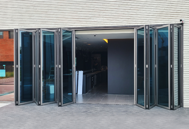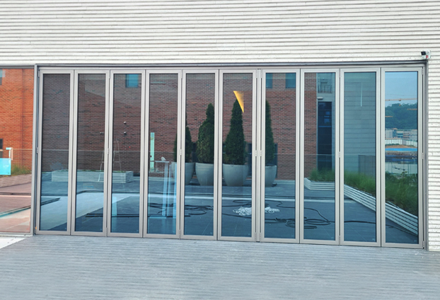병풍처럼 접었다 폈다 하는 접이식문인 폴딩도어는 공간활용도가 높다는 점과 밀폐된 실내에서 탁 트인 실외의 분위기를 동시에 느낄수 있는 개방감이 폴딩도어의 매력 중 하나 입니다.