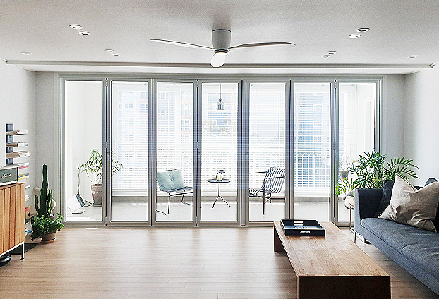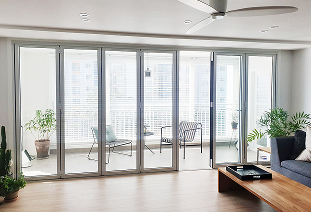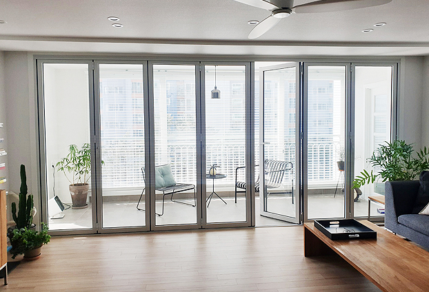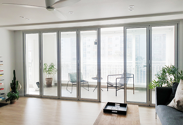 카페 분위기를 내기 좋은 요소 중 하나로써 쭉쭉 뻗어있는 폴딩도어의 모습에 충분한 카페의 느낌을 살릴수 있습니다. 또한 베란다는 집 안에서 가장 햇빛이 잘 들어오는 곳으로 따뜻한 햇살을 받으며 집안에서도 카페에 온듯이 차 한잔을 즐길수 있습니다. 햇빛이 잘 들어오는 곳으로 햇빛으로 인해 프레임 도장색상이 들뜨거나 색바램 또는 도장 까짐 같은 현상이 생길까 하는 생각을 하시는 고객님들도 계실수 있는데, 그러한 불량현상을 최소화 시키기 위해, 분체 도장방식이 아닌 불소수지 도장방식으로 프레임 도장을 제작하여 프레임 도장의 내구성을 더욱 높였습니다.