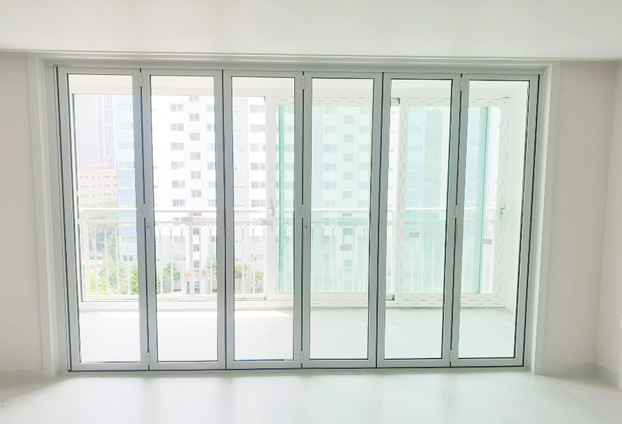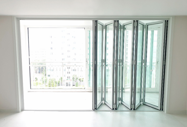 베란다 폴딩도어로는 화이트 색상의 프레임으로 선택하였으며, 편개형 전개방식으로 시공하였습니다.
