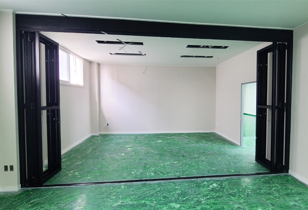 폴딩도어의 탁월한 공간활용도와 많은 기능성에 불투명하고 딱딱한 칸막이 대신 시공하여 공간을 자유롭게 확장과 분리를 하여공간 활용도를 충분히 높일수 있습니다. 이번 시공도 공간활용도를 위한 목적으로 설치를 진행하게 되었습니다. 공장의 특색에 맞게 여러 작업실 및 자재 보관실이 있으며 각 목적에 맞게 사용할수 있는 많은 공간들이 나눠져 있습니다. 그 나눠진 공간안에 추가로 폴딩도어를 설치하여 상황에 맞게 공간을 활용할수 있도록 하였습니다.