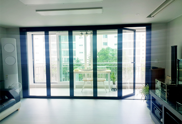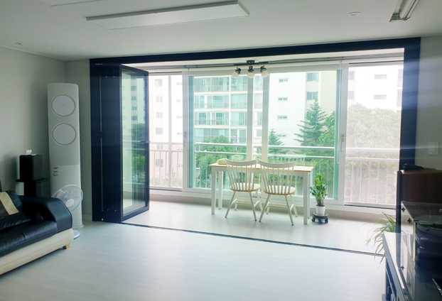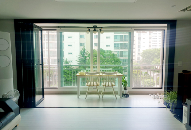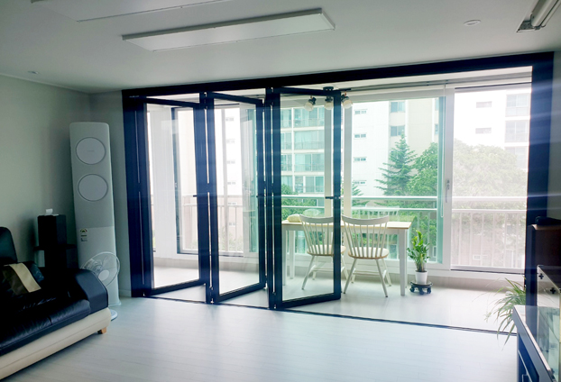 이미 거주하던 중에 시공된 폴딩도어로 무철거레일 시공방법으로 진행하여 하루만에 시공이 빠르게 진행되었습니다.