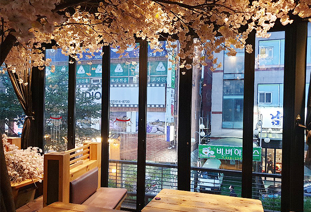 날씨가 좋은 날에는 폴딩도어를 개폐하여 2층이지만 실외의 느낌을 받아 방문하신 손님들께서 실내이지만 야외같은 느낌을 받아 더욱 즐거운 시간을 보내실수 있습니다.