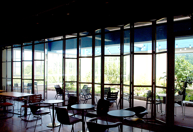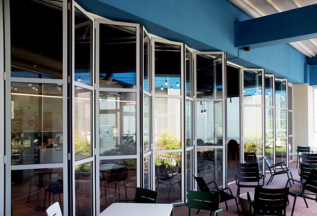 총 16개의 폴딩도어를 양개형(2way) 방식으로 양쪽방향 개폐할 수 있도록 시공 하였으며, 모두 닫아 놓을시 출입이 가능할수 있도록 오른쪽에 1개의 시스템 도어를 함께 시공하였습니다.