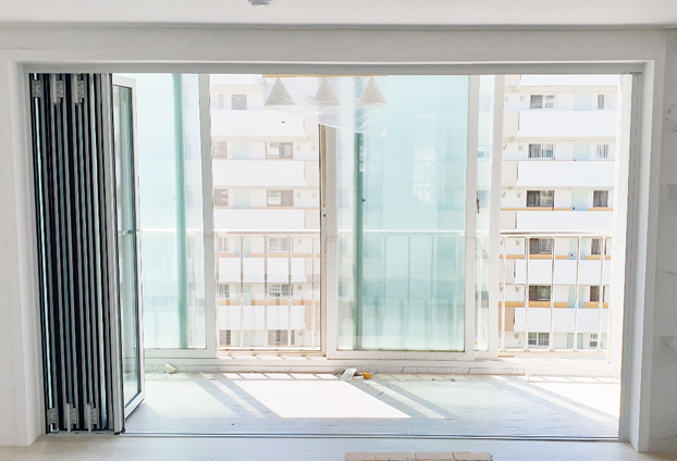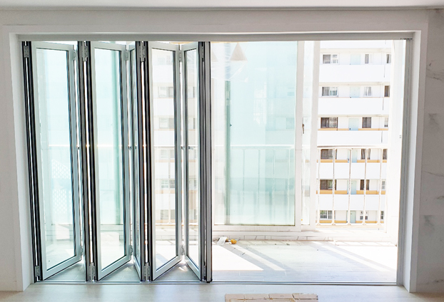 주거지의 대표적인 폴딩도어는 베란다와 거실 중문입니다. 기본적으로 미서기(미세기)창이 설치로 2~3개의 창으로 1개는 고정 후 나머지 1~2개의 창을 이용하여 여닫으며 사용을 합니다. 아무래도 고정되어 있는 1개의 창으로 출입구 공간이 넓지 않으며, 고정되어 있는 큰 창으로 출입공간을 더 늘릴수 없게 되어있습니다.