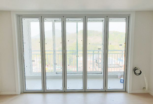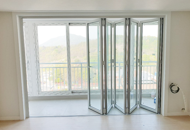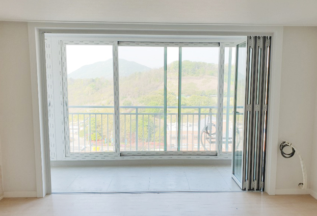 일반적인 중문이 불편하여 확장 시공을 하게 되면 거실이 넓어지는 장점이 생길수 있으나, 따로 공간을 분리하여 독립적인 공간으로써 나만의 장소 및 취미 공간등으로 활용하기는 어렵습니다. 일반 베란다 중문 샷시 대신 폴딩도어를 설치하여 사용하게 되면 90% 이상의 개폐가 되기 때문에 공간 확장성과 활용도가 높아집니다.