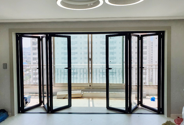 문과 문으로 연결되어있는 폴딩도어의 외형으로 추운 겨울날 외부의 기온이 들어와 실내 온도가 내려가 추울꺼라 생각하시는 고객님들이 많습니다. 하지만 문 사이사이 고무가스켓으로 닫아놓을시 밀폐력이 뛰어나기에 단열, 방음, 방품 효과가 뛰어납니다.