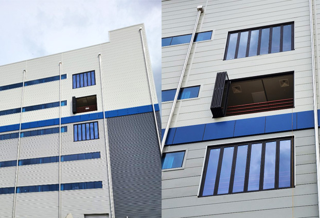 신축으로 지어지는 테크노벨리 6층의 건물에 4,5,6층 창문형 폴딩도어를 시공하였습니다. 창문이라고 하기보다는 외부에서 들여오는 많은 양의 자재, 기계 등을 실내 안으로 옮길때 여닫아 손쉽고, 편리하게 진행할수 있도록 폴딩도어를 시공하였습니다.