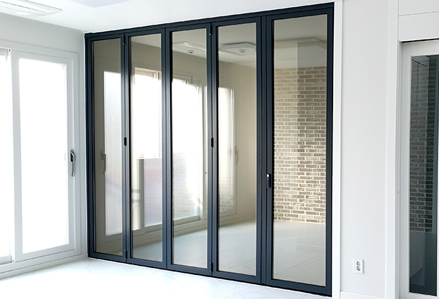 폴딩도어의 하부에는 모헤어를 장착하여, 작은 틈으로 들어올수 있는 더운 열기 또는 추운 기온도 빠짐없이 차단하며 외부 소음과 방풍 차단 효과도 높혔습니다.