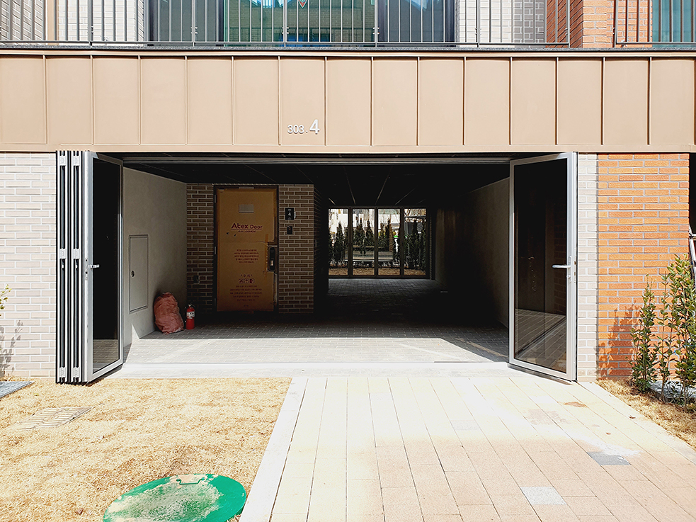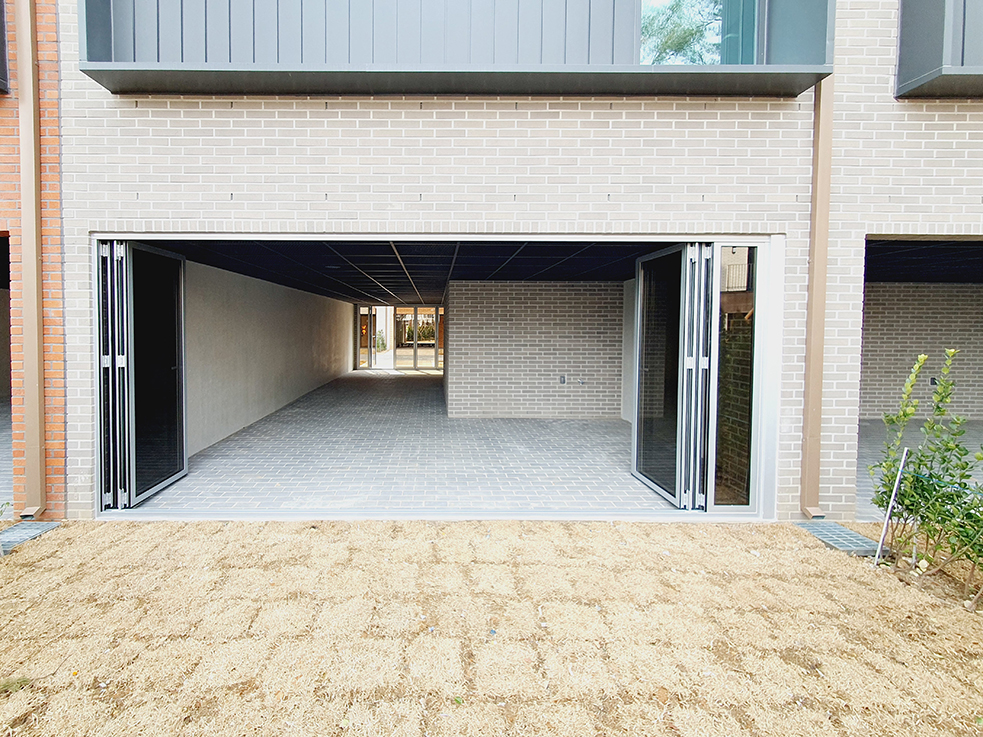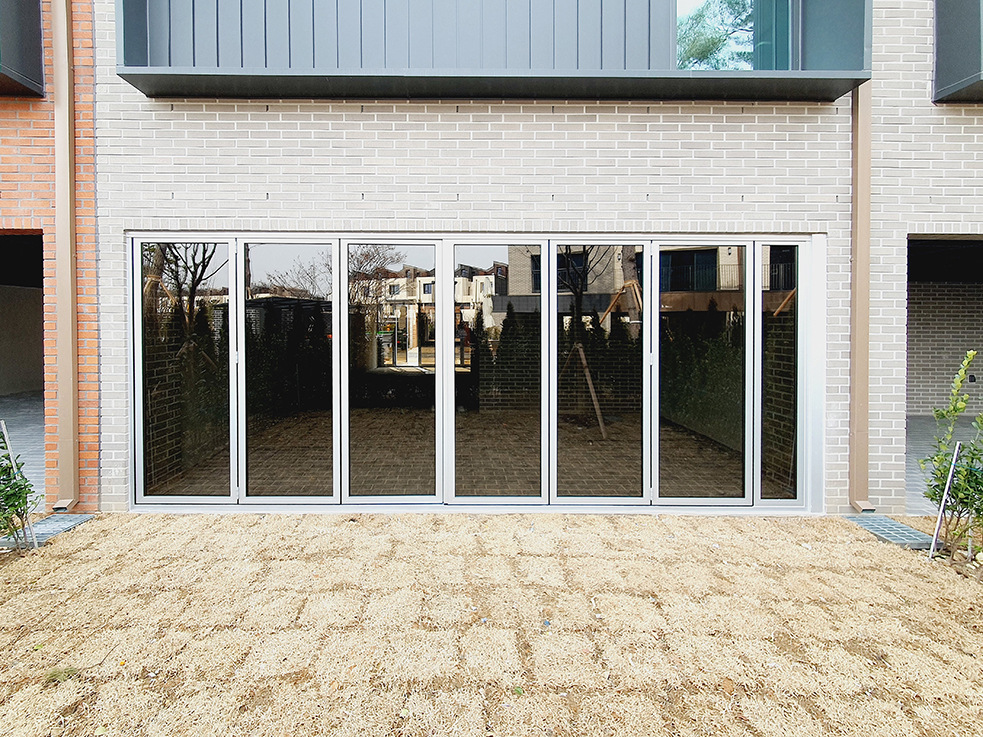 폴딩도어를 닫으면 실내 공간으로, 오픈하면 실외 공간으로 쉽게 전환할 수 있어, 필요에 따라 공간을 자유롭게 연출할 수 있습니다. 이런 점에서 폴딩도어는 이 타운하우스의 프라이버시 보호와 공간 활용에 큰 기여를 하며, 실용성과 세련된 디자인을 동시에 만족시키는 완벽한 선택이 되었습니다.