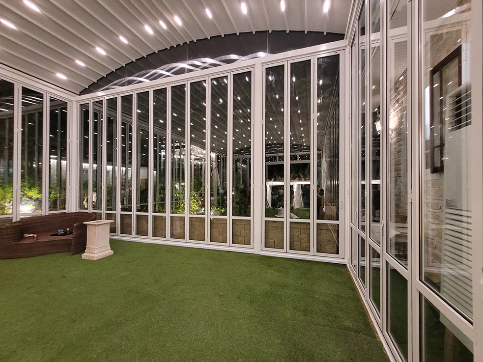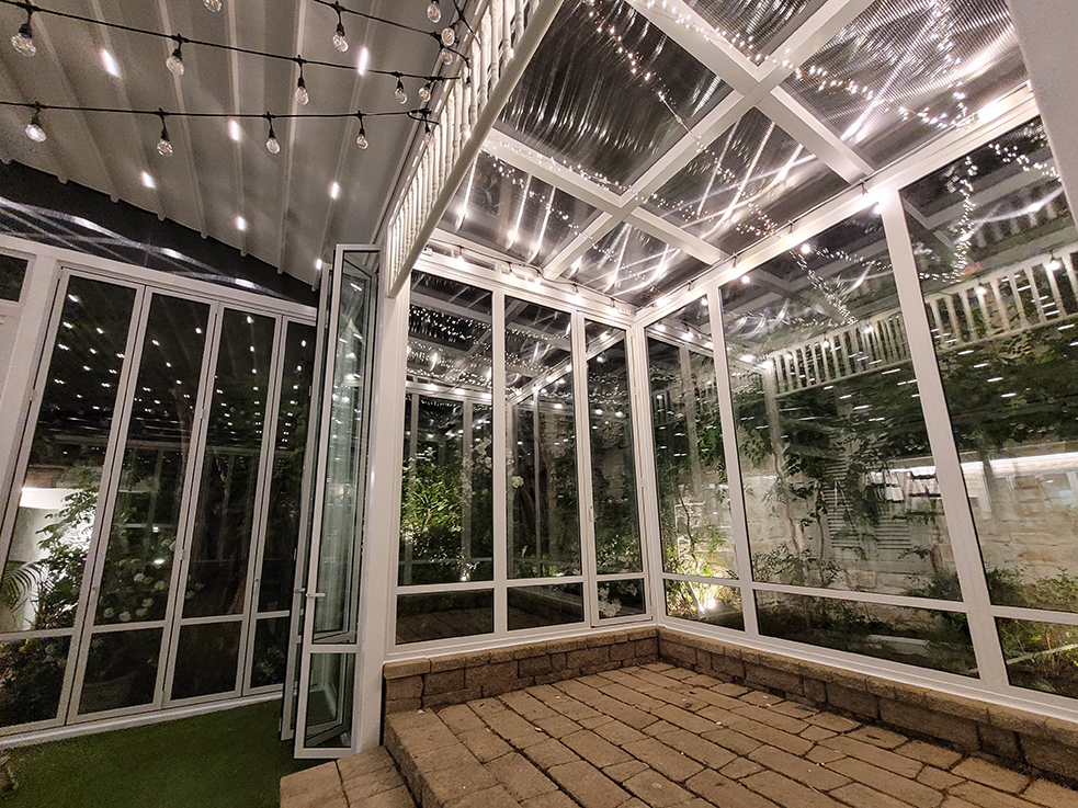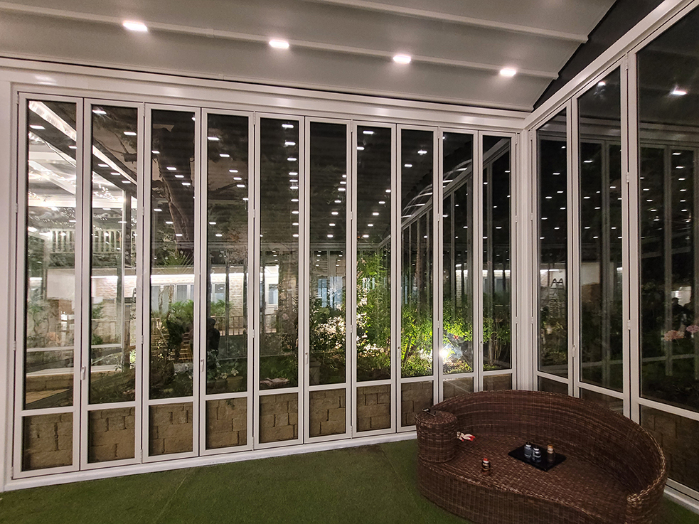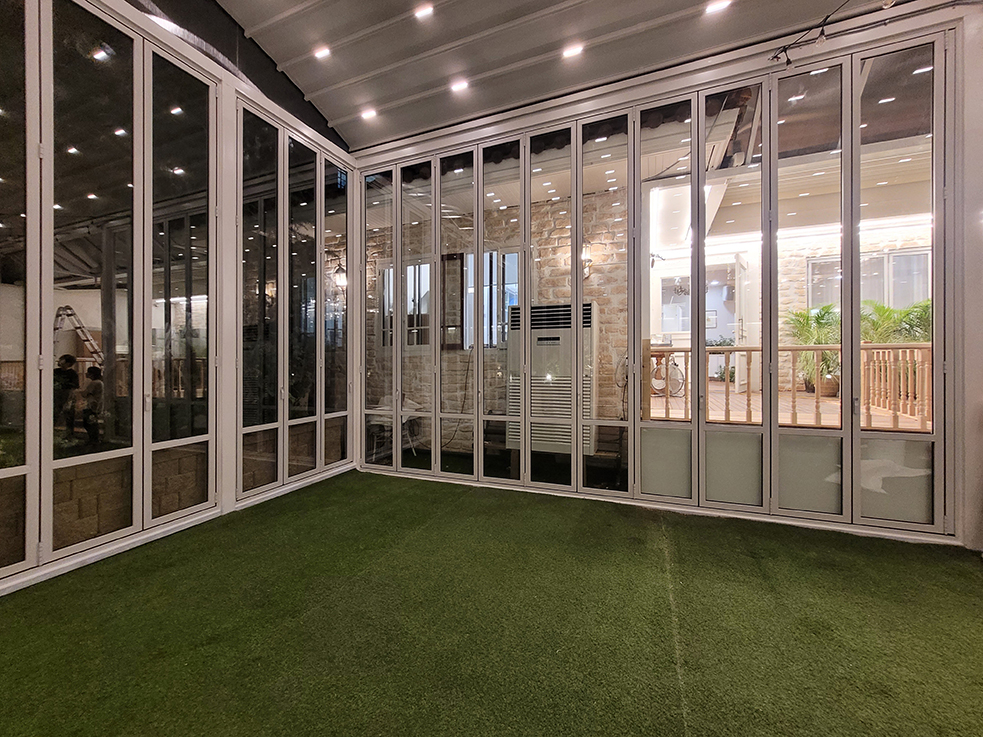 폴딩도어는 날씨나 계절에 상관없이 언제든지 개방하거나 닫을 수 있어, 실내와 야외 공간을 자유롭게 연결할 수 있습니다. 또한, 밤에는 조명을 켜 밝은 실내 분위기를 유지할 수 있어, 저녁에도 쾌적하고 환한 환경에서 행사를 진행할 수 있습니다. 폴딩도어 덕분에 야외 공간이 실내와 완벽하게 조화를 이루며, 행사에 맞는 분위기를 연출하는 데 큰 도움이 됩니다.