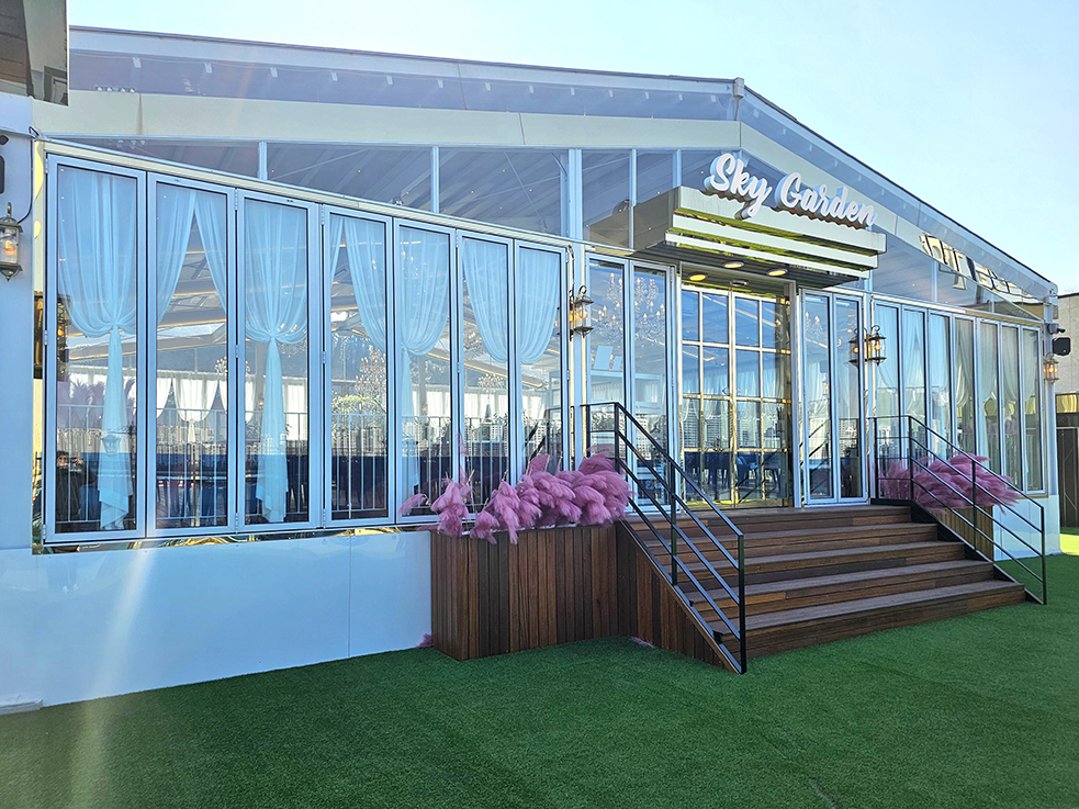 송도 힐즈로에 위치한 하모니스토리는 전층이 레스토랑과 카페로 구성된 멋진 건물로, 옥상에 자리 잡은 루프탑 카페가 특징입니다. 이 루프탑 카페는 공간의 개방감을 극대화하기 위해 4면 모두 폴딩도어를 설치하여, 날씨와 분위기에 맞춰 전체 공간을 개방할 수 있도록 설계되었습니다.