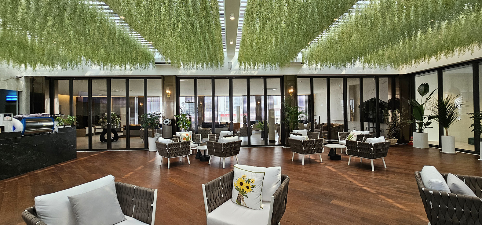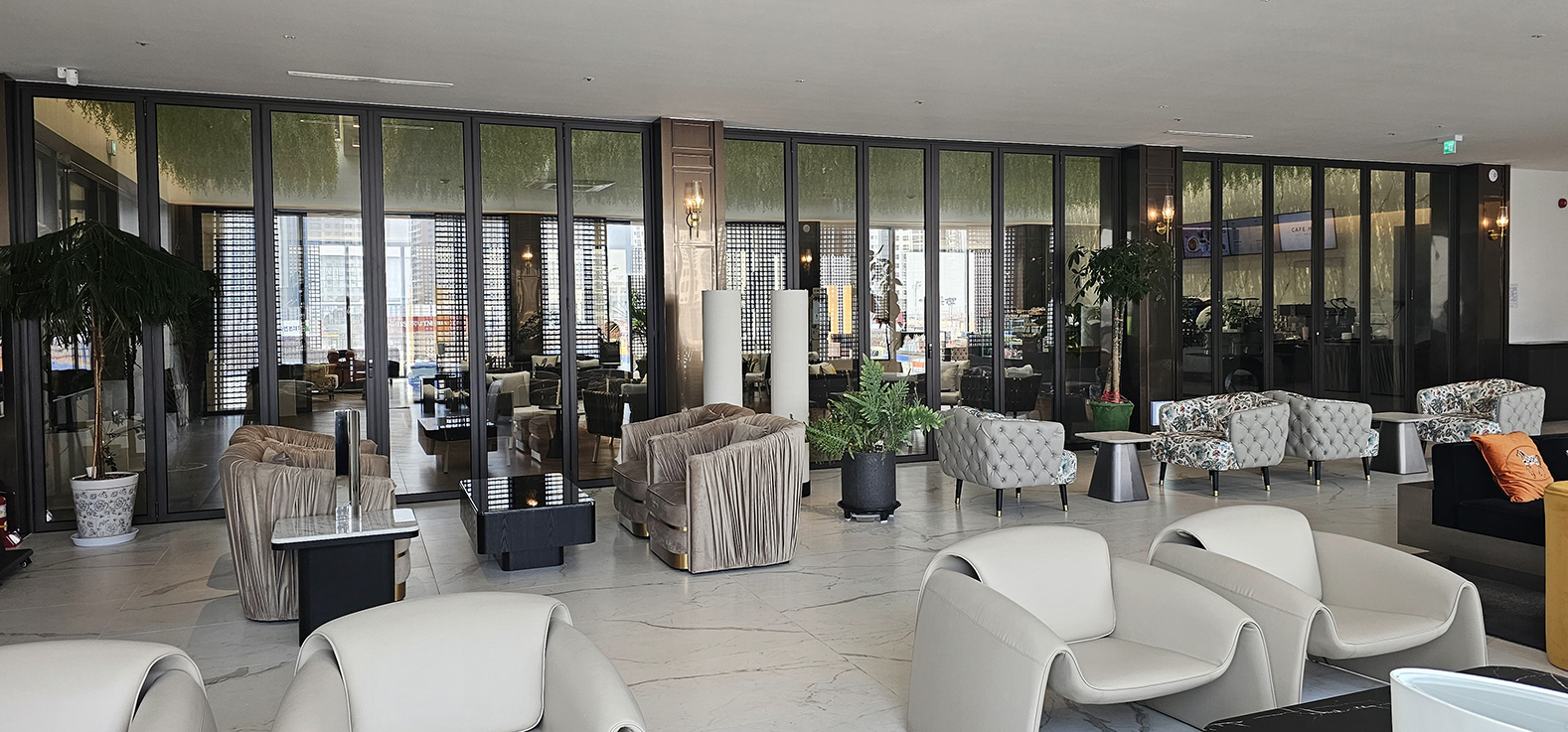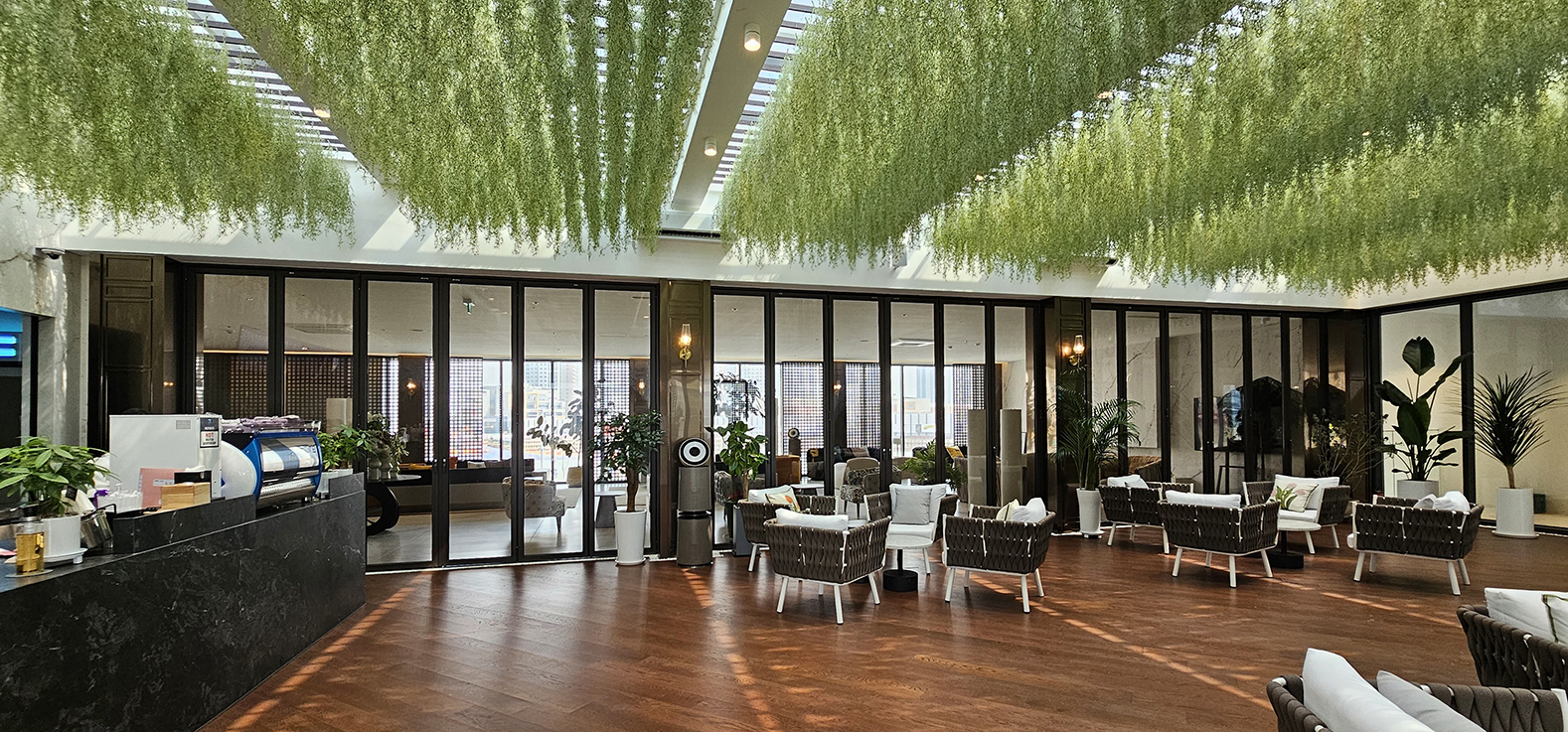폴딩도어 덕분에 소음을 분산시킬 수 있어, 더 조용하고 프라이빗한 공간을 필요로 하는 손님들도 편안하게 이용할 수 있습니다. 폴딩도어는 공간을 자유롭게 나누고 합칠 수 있어 카페의 분위기와 기능성을 한층 더 향상시켜 주는 중요한 요소로 작용합니다.