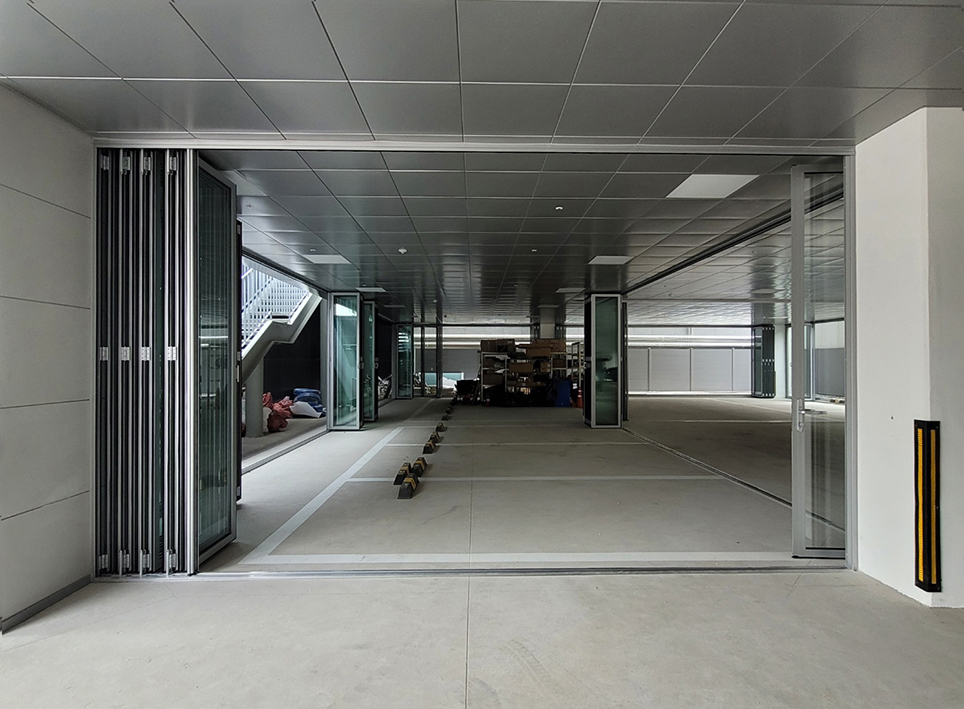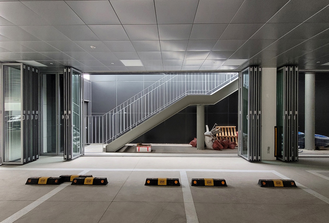 주차장으로 건축되었지만 근생 공간으로도 용도 변경이 가능한 건물이라 폴딩도어를 설치하여 상업공간으로도 사용이 가능하도록 하였습니다.