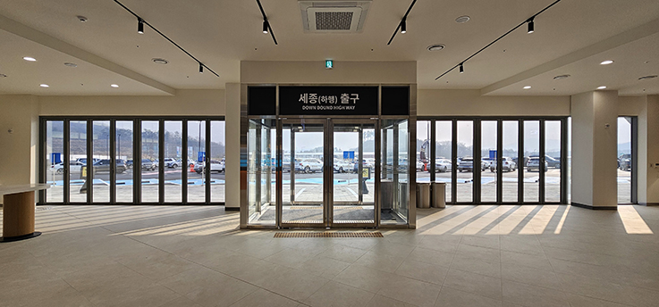 세종~포천간 고속도로에 신축된 고삼 호수 휴게소에 폴젠코리아 폴딩도어를 설치하여 휴게 공간의 활용성과 개방감을 한층 높였습니다.