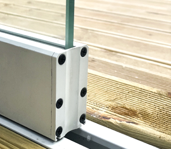 글라스폴딩도어를 안전하고 완벽히 구동하기에 최적합화된 프레임. 상/하부에 힘을 효과적으로 분산하여 도어를 부드럽게 구동할수있게 함